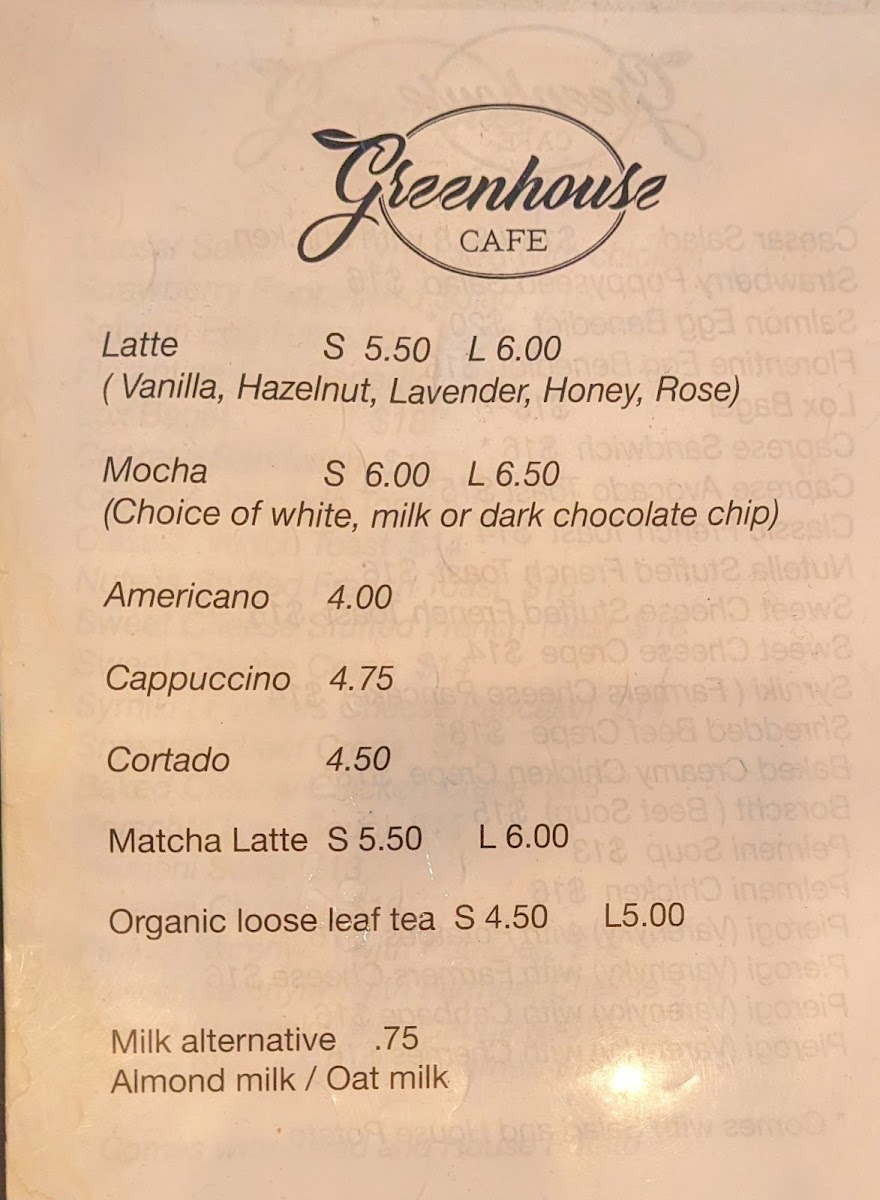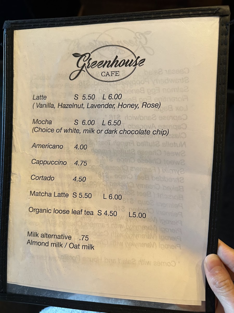 Greenhouse Cafe is best known for its exceptionally crafted coffee drinks. Bakeries may come and go, but the pistachio latte, priced at just US$8.00, has built quite a loyal following. Guests also rave about the refreshing matcha latte (US$5.00), and classic espresso (US$3.75), both of which showcase an impressive dedication to quality and flavor.